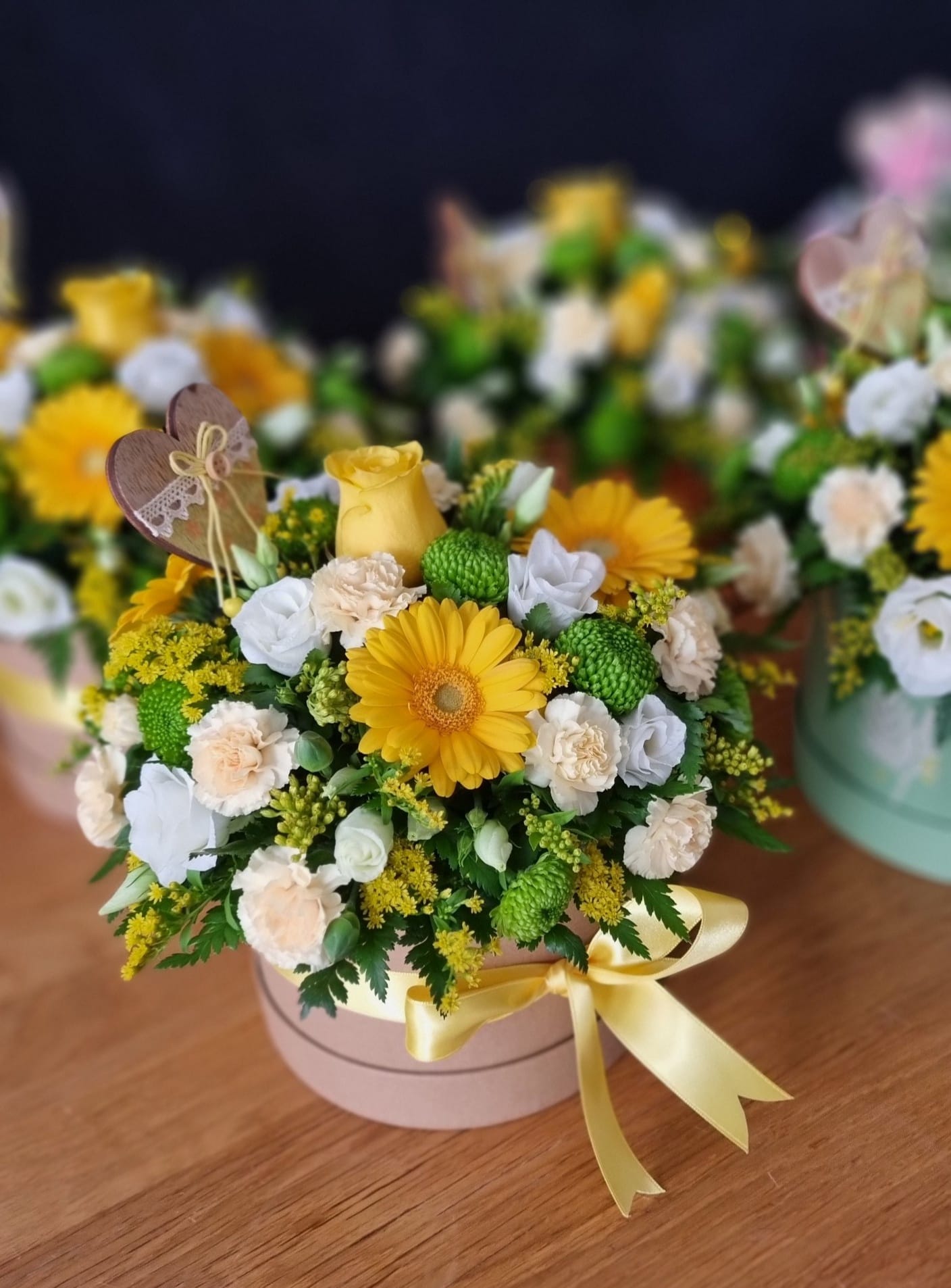 Elegantly arranged in chic hatboxes, these floral creations make a stylish statement for any occasion.