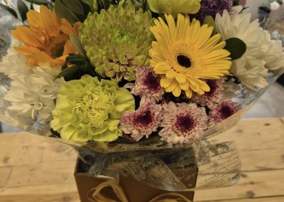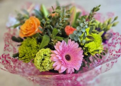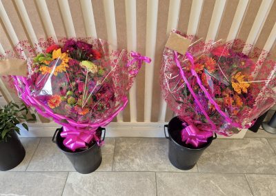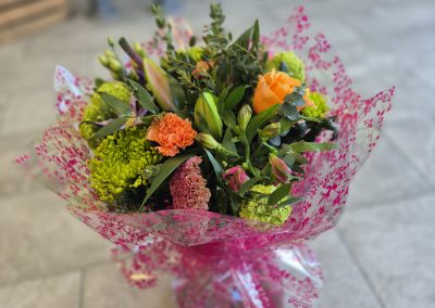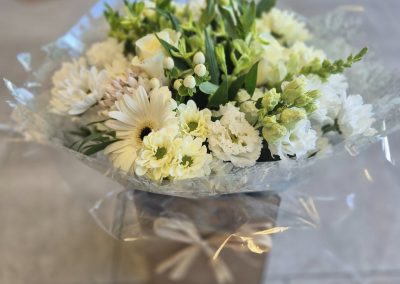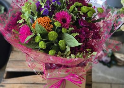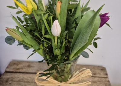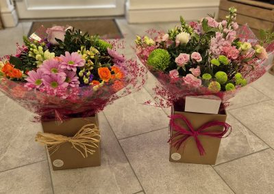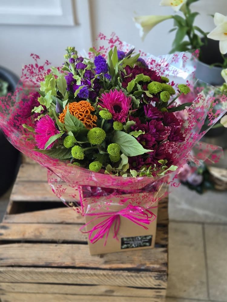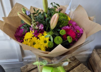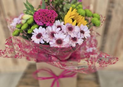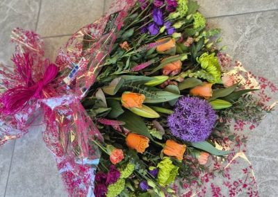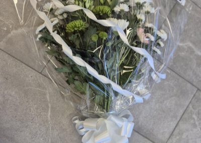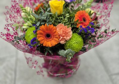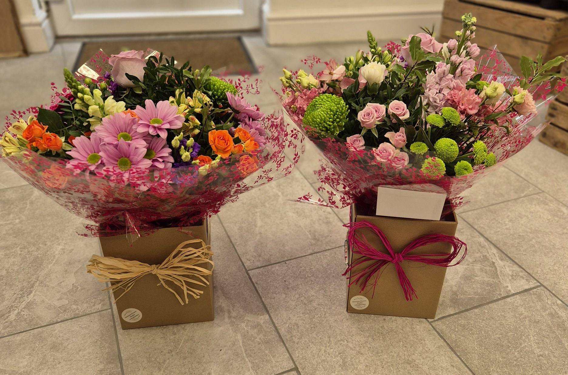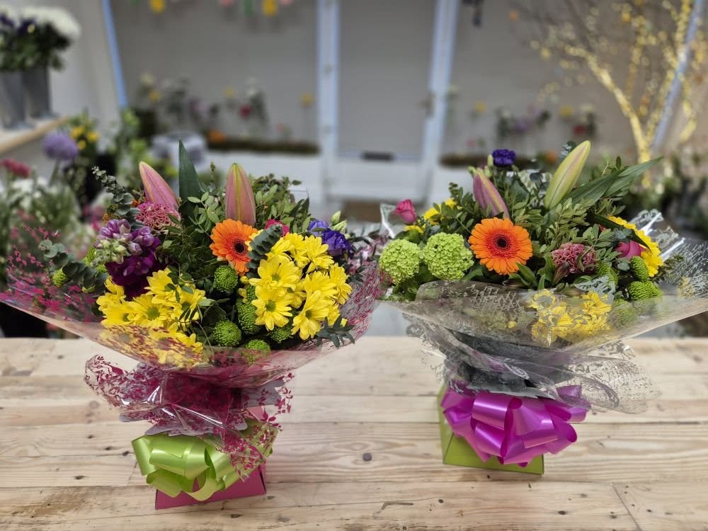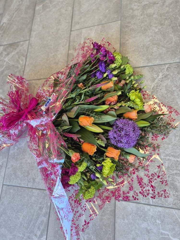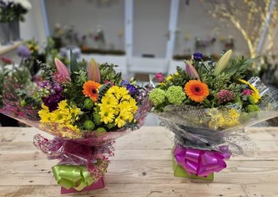 Hand Tied Flowers are ready to pop into a vase at home. Please note; Vases are available with a charge.