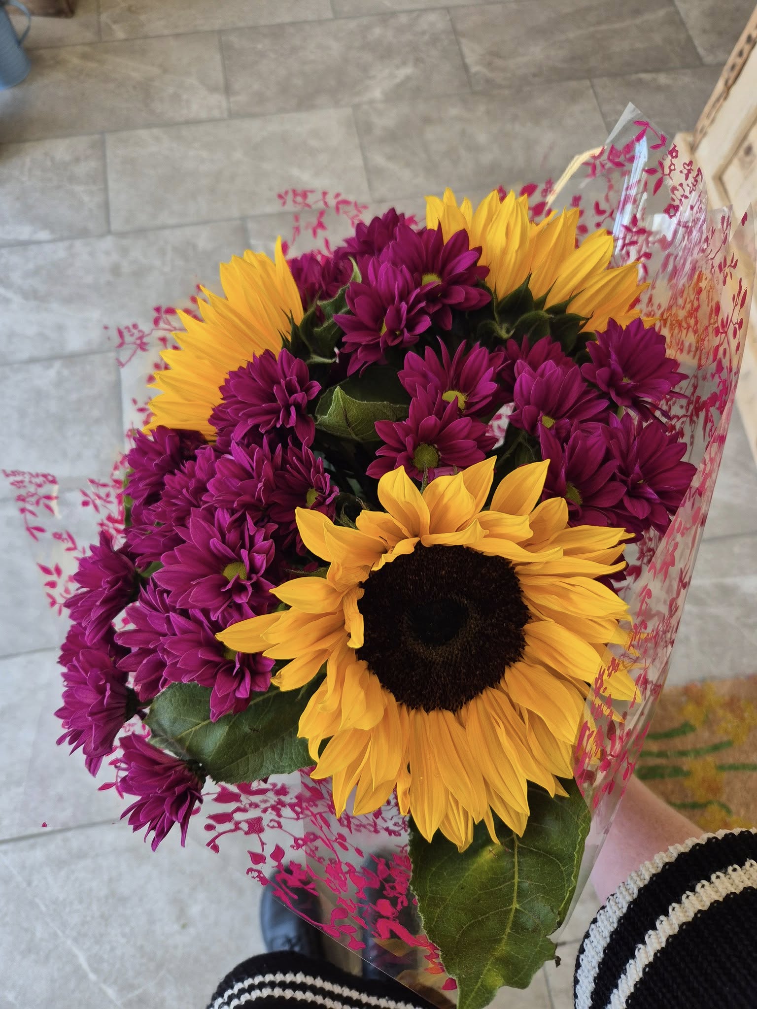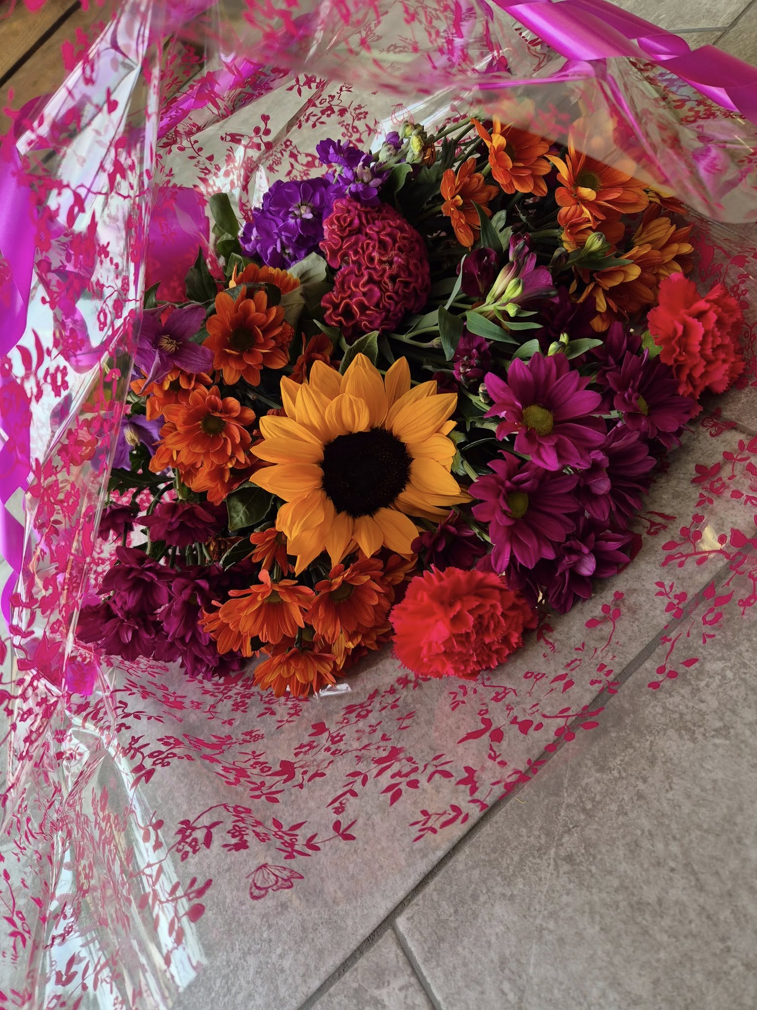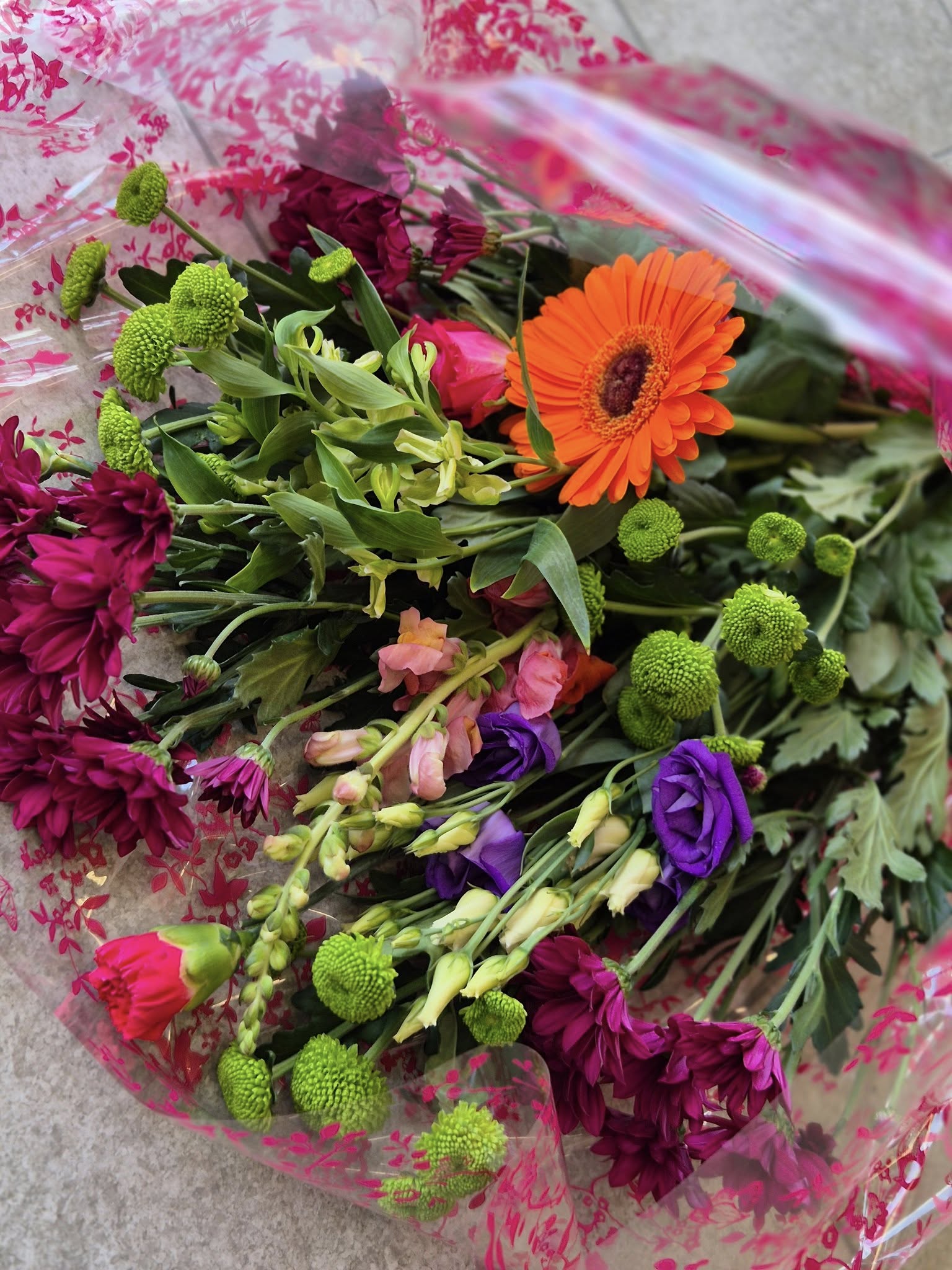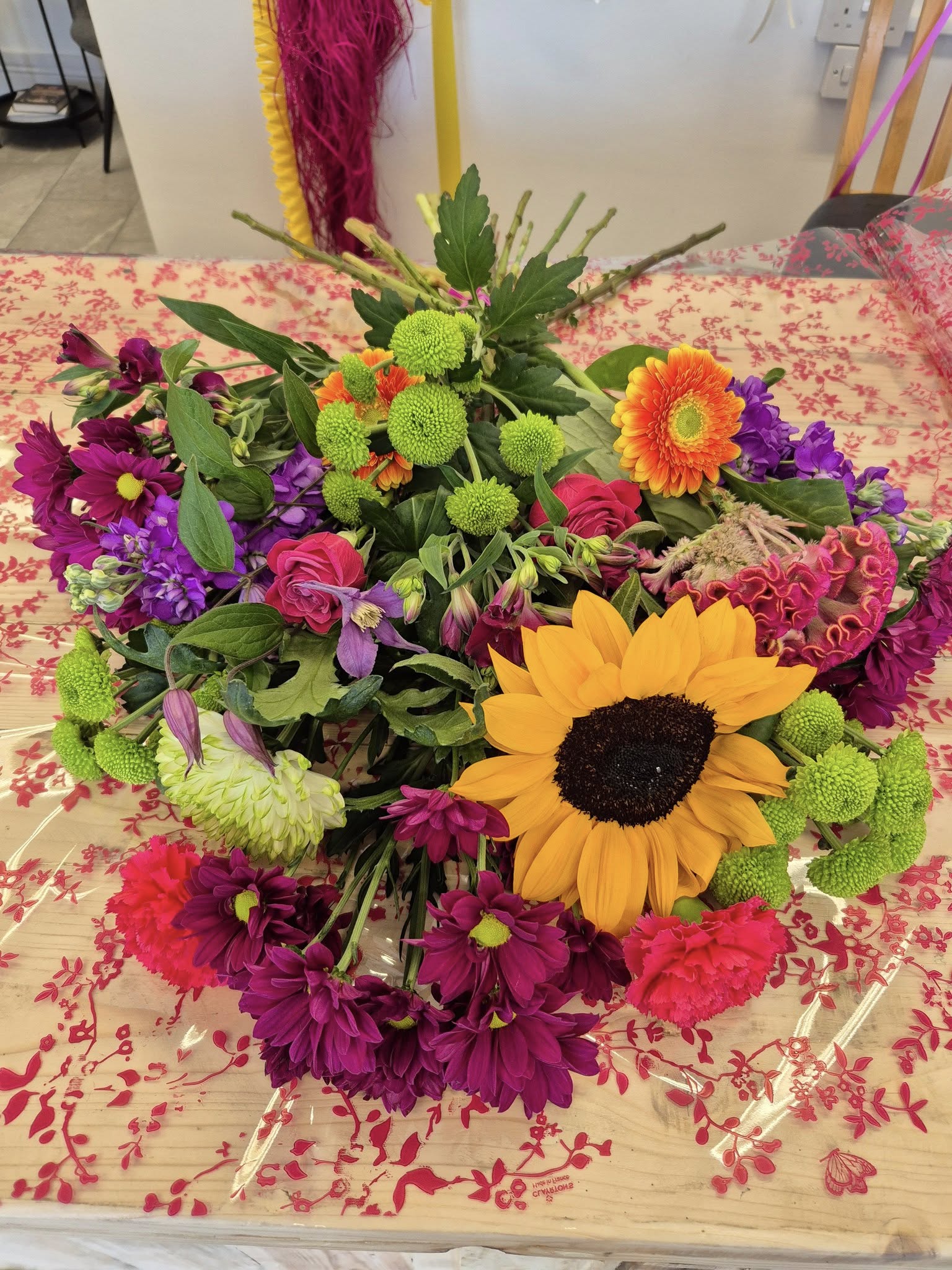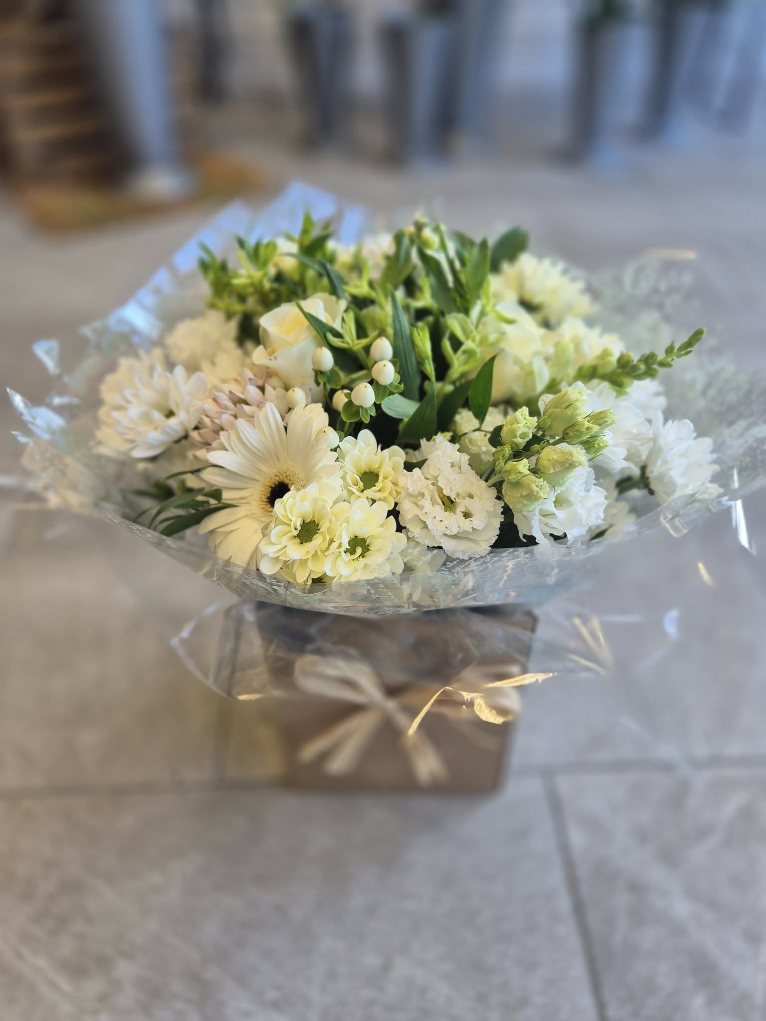 Hand Tied Flowers are ready to pop into a vase at home. Please note; Vases are available with a charge.
