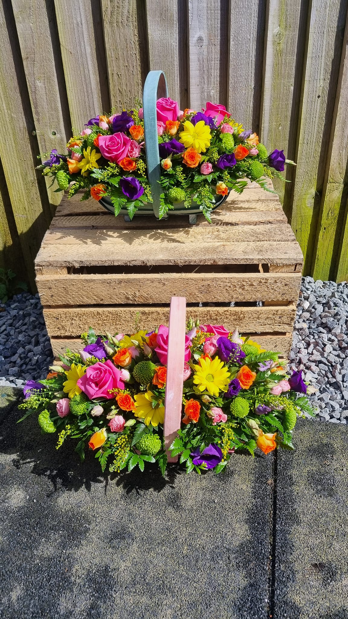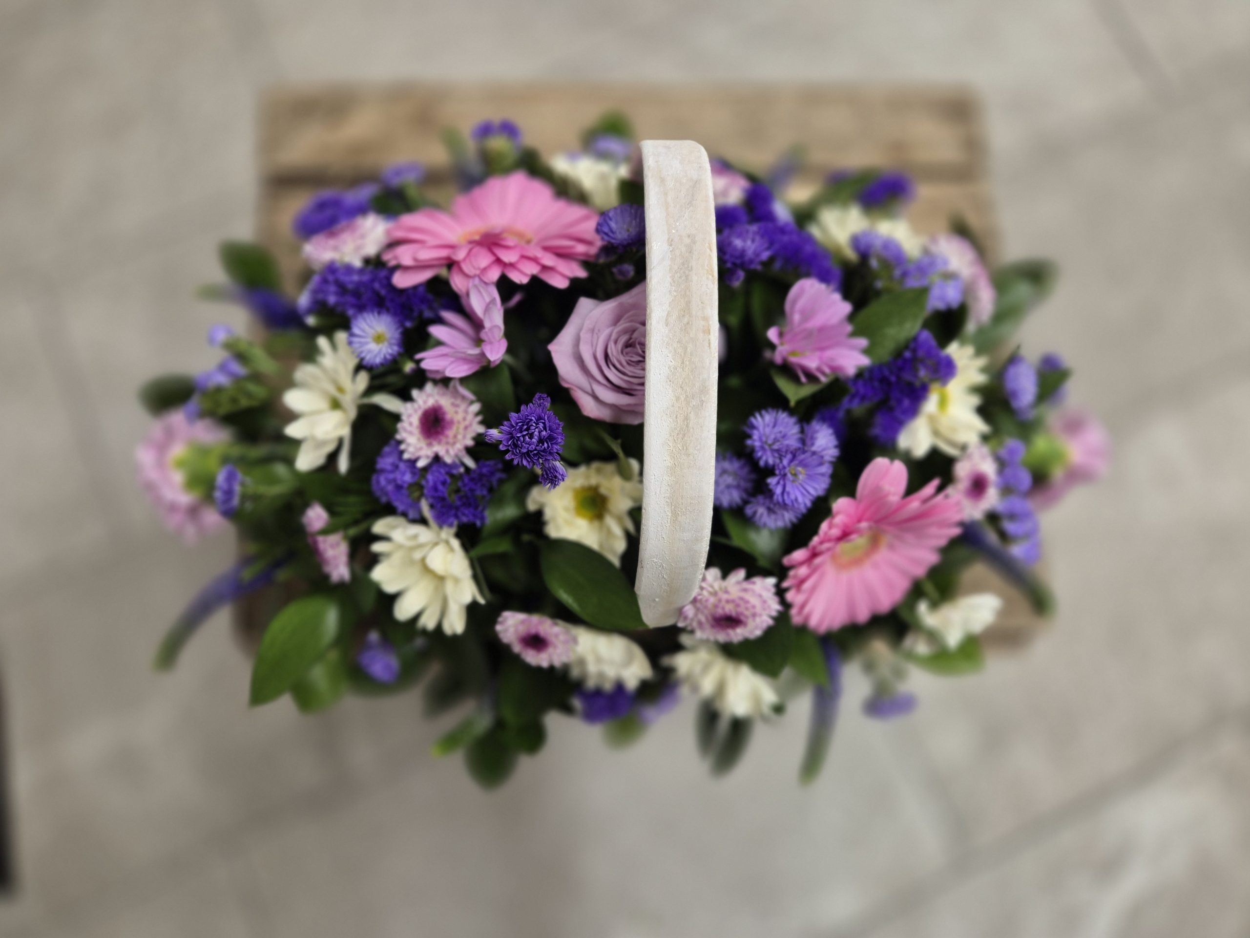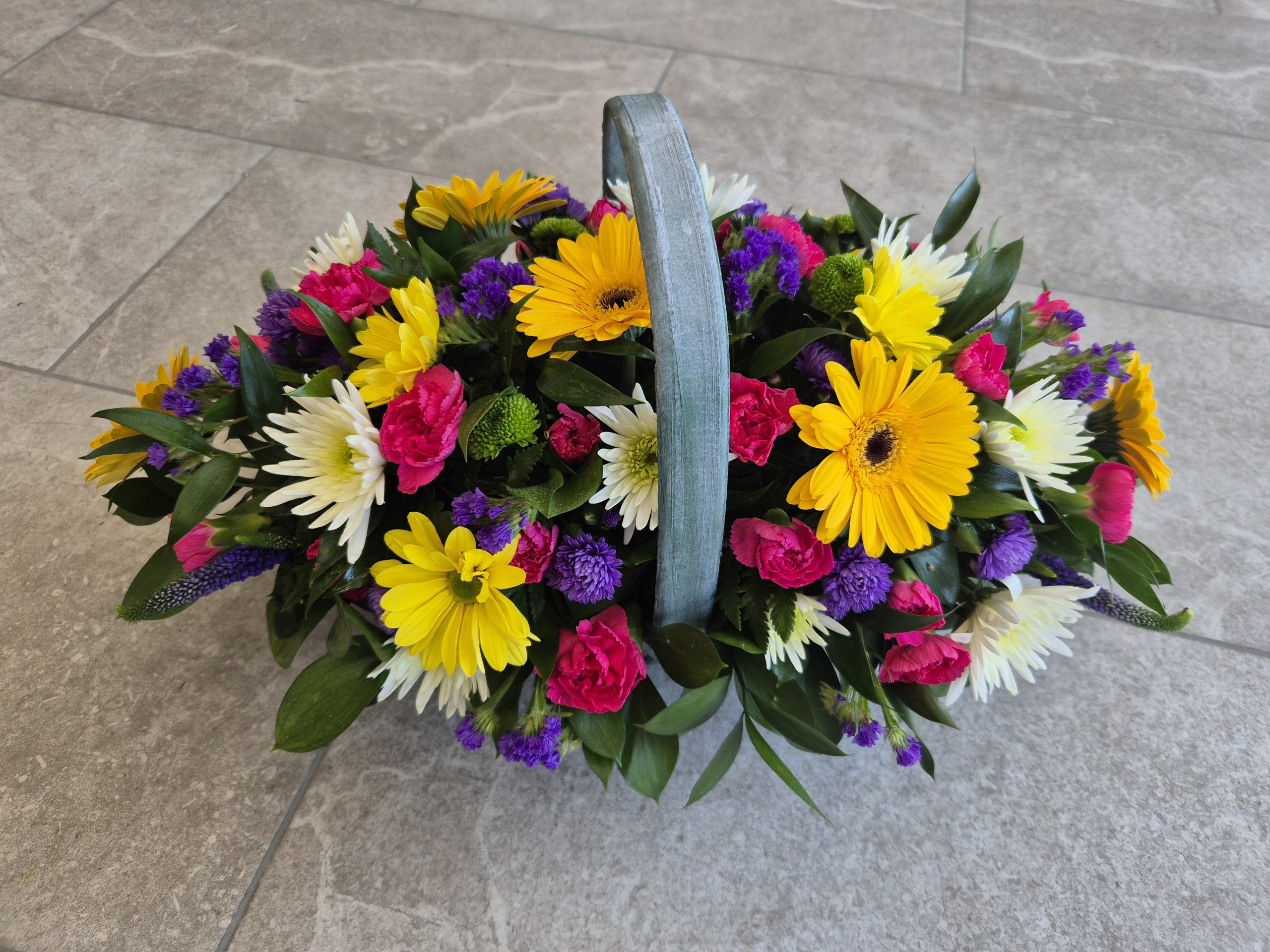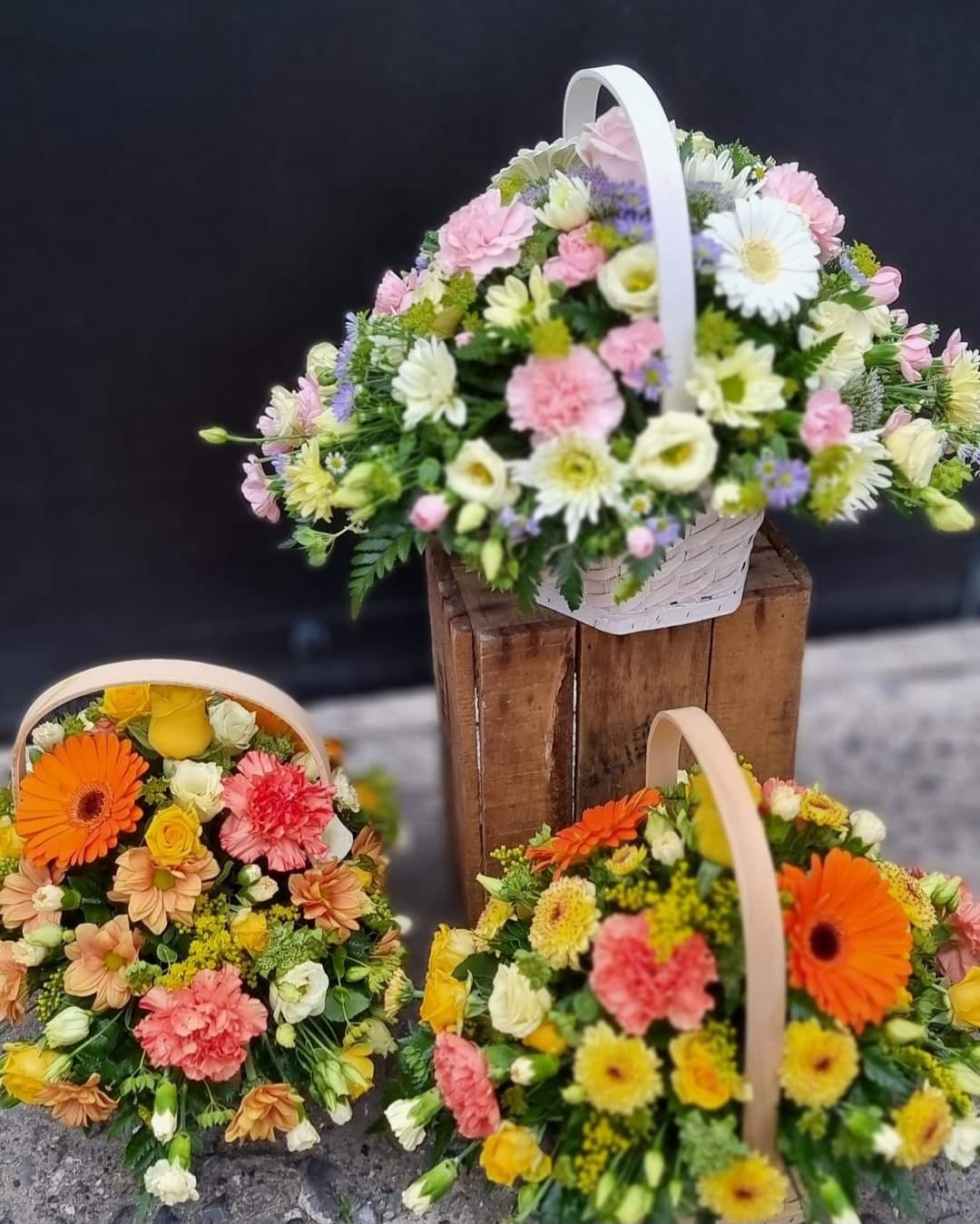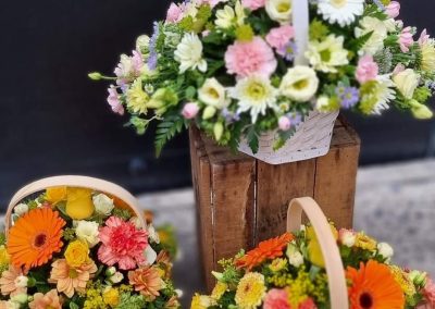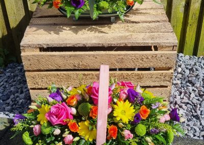 Basket Arrangements are a perfect alternative gift; arranged in foam, recipient just needs to top up with water (very low maintenance gift). Including care instructions, an optional free card message and a reusable basket.