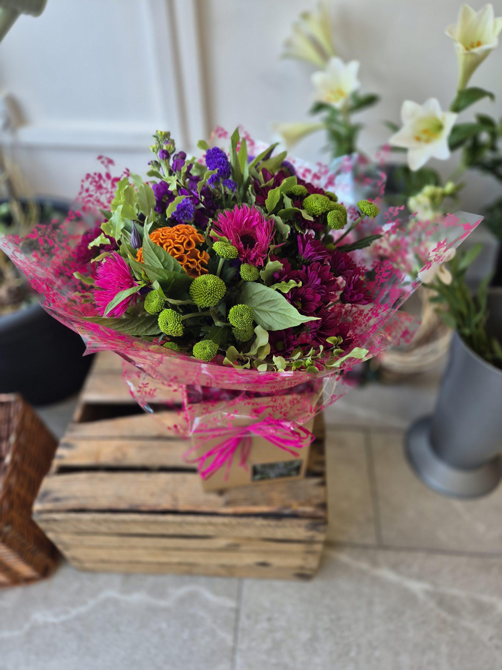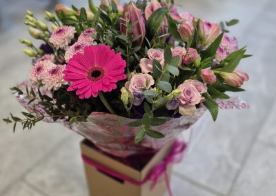 At Swansea Flower Studio we offer a variety of Flowers for every occasion. Below is a selection of Traditional Style Bouquets, Aqua Bouquets, Basket Arrangements and Hatbox Arrangements.