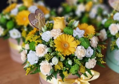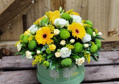 Hatbox Arrangements are a perfect alternative gift; arranged in foam and presented in a hatbox, recipient just needs to top up with water (very low maintenance gift). Including care instructions, an optional free card message and a reusable hatbox.