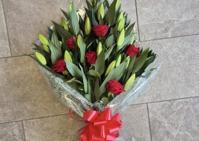 Traditional style bouquets for those who like to arrange flowers in a vase themselves. This style of bouquet keep the full length of the stems and do not come with a water source. Presented gift wrapped with a bow, including flower food, care instructions and an optional free personalised card message.