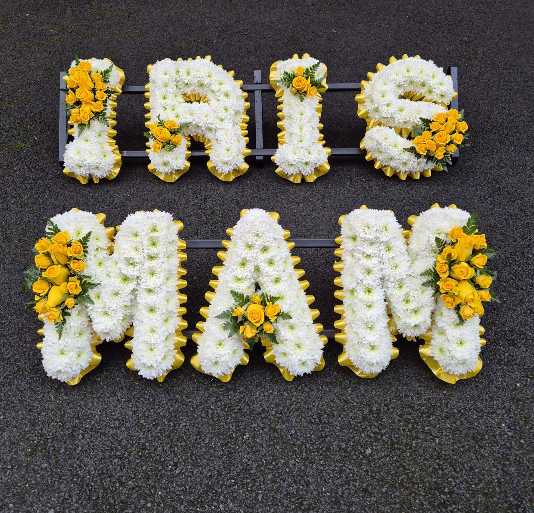 Letter Tributes are a wonderful way to pay tribute to a family member or friend. these are priced at £50 per letter. With a variety of choices of colours
